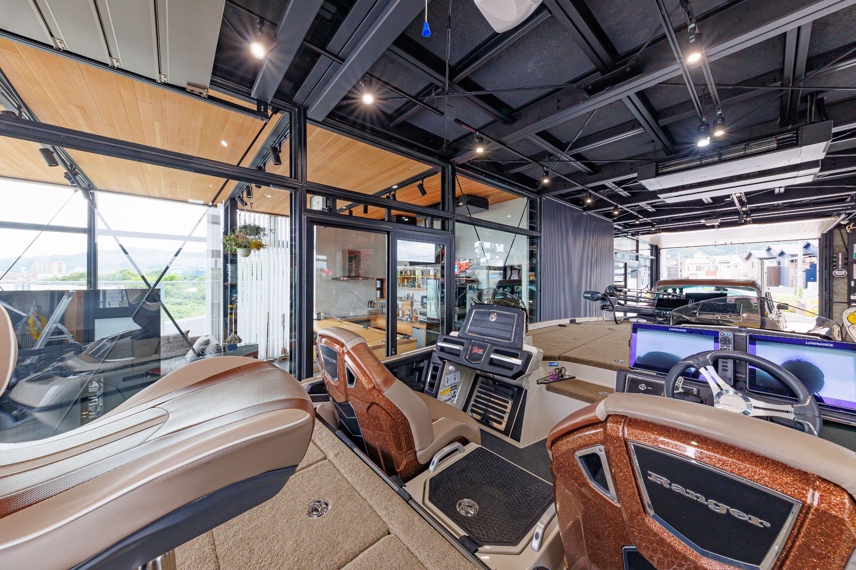 LGS のフレームを利用したガラス外壁のメリットを発揮して、シャープな外観と内部の程よいスケルトン感など、店舗建築に必要な要素がバランスよく実現できます。
